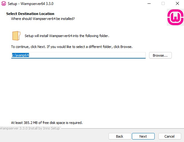 As previously stated, the default installation drive and directory for WAMP is “C:\WAMP64”. If you have downloaded the 32-bit version of the software, the designated directory will be “C:\WAMP32”.